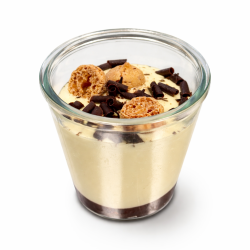 € 4,00Desert al mascarpone con base di cioccolato, decorato con riccioli fondenti e amaretti glassati.