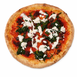 € 9,50Pomodoro rustico, fior di latte, pancetta, spinaci, salame picc, gorgonzola